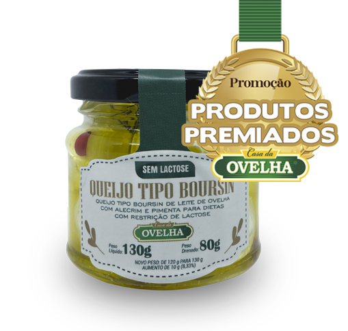 Ingredientes: Leite de ovelha integral pasteurizado, óleo de girassol, azeite de oliva, alecrim, pimenta rosa, sal, enzima lactase, cloreto de cálcio, coagulante e fermento lácteo. Não contém glúten. Alérgicos: Contém leite de Ovelha. Diabéticos: Contém Glicose e Galactose.